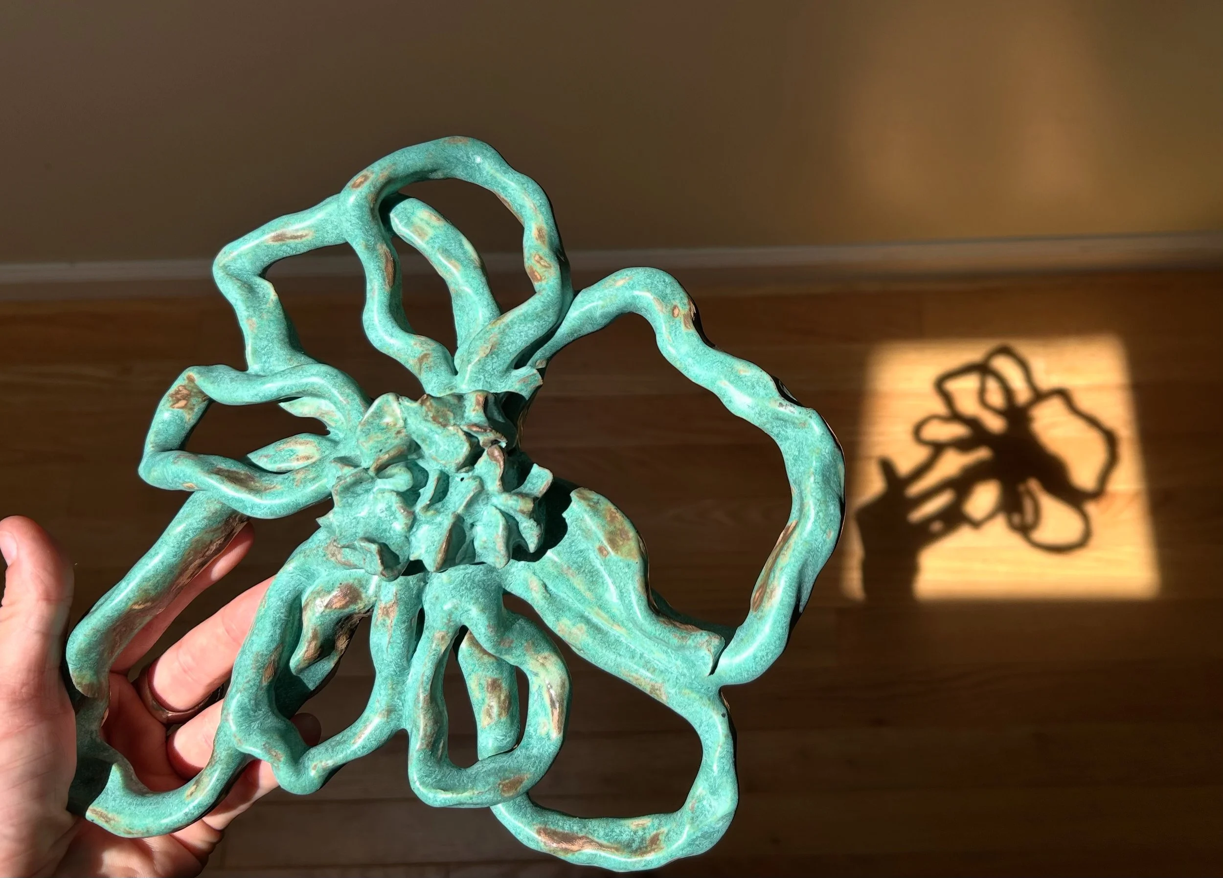 I am drawn to visual, physical, and somatic representations of interconnectedness and how these connections feel in the body. The way in which the natural world and our physical bodies are reflected in one another, such as the parallels between capillaries, tree roots, neurons, and river systems, is something I continue to be interested in representing in my art. These visual patterns often share an emotional language for how I understand memory, stories, relationships, and change. The knots, bends, circularity, and sense of transformation in these patterns echoes my perspective on being.